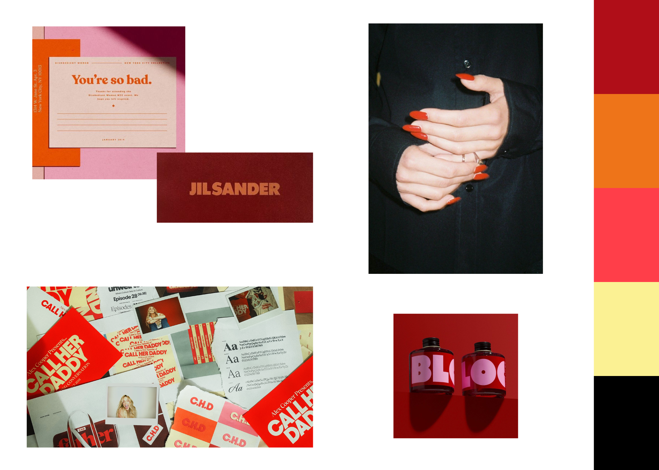Splashes of neon, bright colors that feel like spring and summer—pinks, greens, yellows, purples—anything bright and playful that evokes high energy. Patterns also work well for this sign—like checkerboards. You can be a bit trendier with this placement, so if your brand is in line with it, be a bit gen-z maximalist with your visuals.